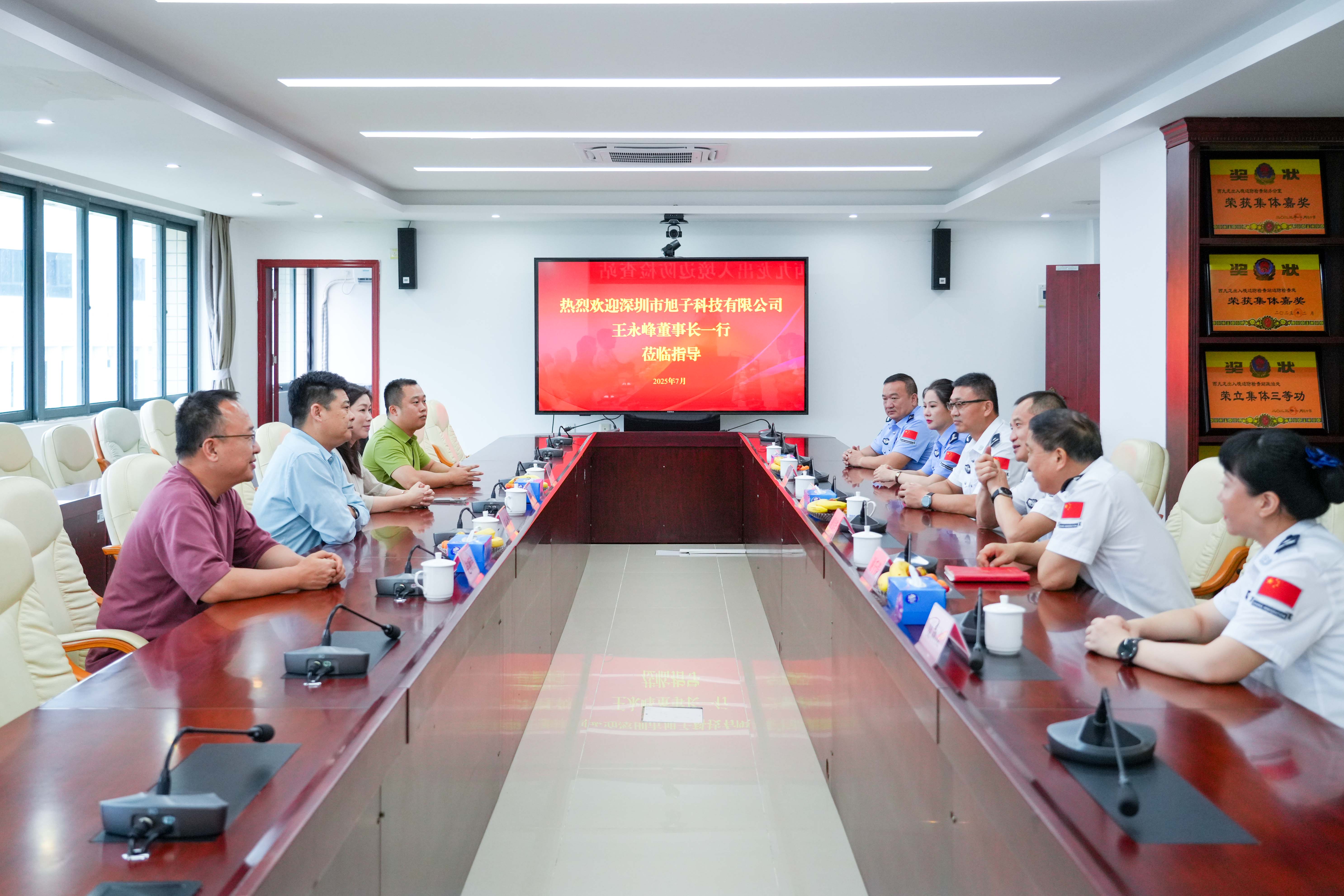 在中國人民解放軍建軍98周年即將到來之際,為深入貫徹新時代雙擁工作精神,弘揚愛國擁軍的優(yōu)良傳統(tǒng),7月30日,旭子科技董事長王永峰率隊走進深圳西九龍邊檢站,開展“八一”建軍節(jié)前夕走訪慰問活動,向常年奮戰(zhàn)在國門一線的人民警察致以最崇高的敬意。